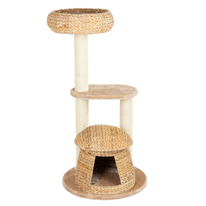 The Banana Leaf Bali scratching post offers your cat various opportunities to rest and observe its surroundings on three levels. There are three scratching posts, which are wrapped in natural sisal and invite your cat to groom its claws extensively. The upholstered lying surface in the cave and the comfortable cushion on the viewing platform round off the features.
