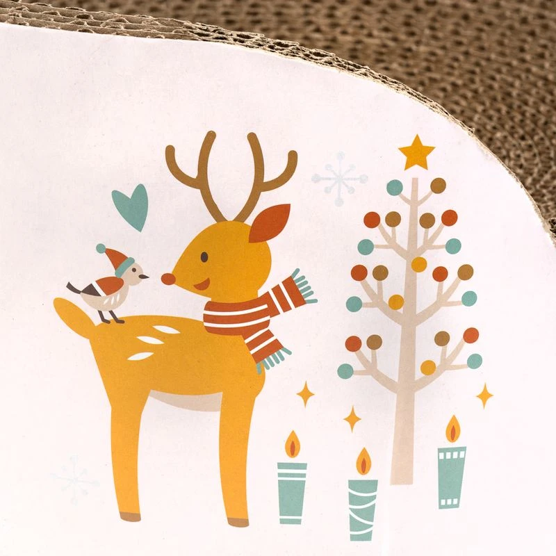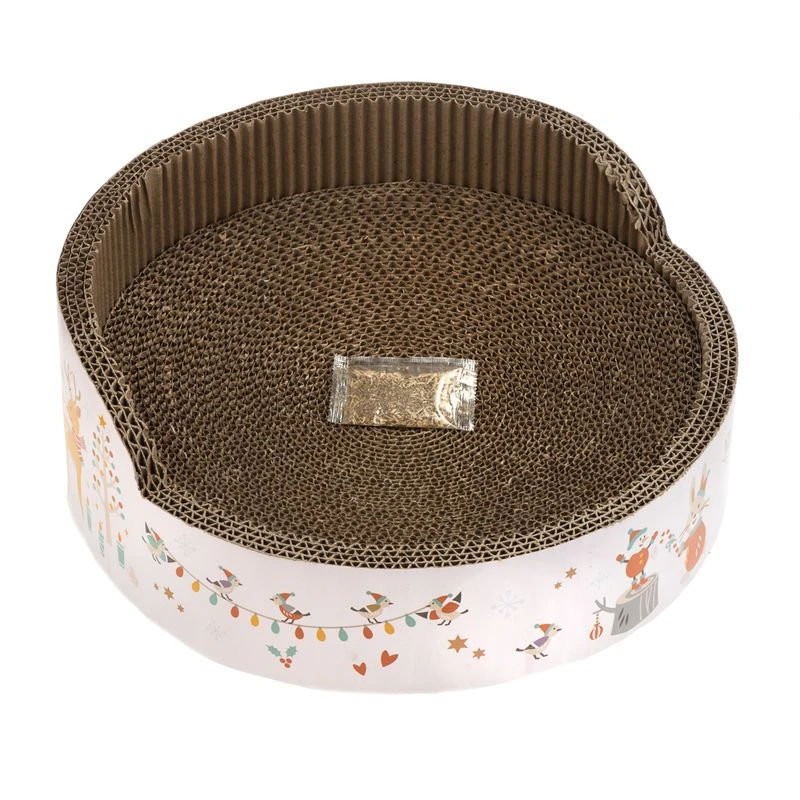 This wonderful piece of cat furniture is made from 100% corrugated cardboard, which is not only magically attractive to many cats, but is also environmentally friendly because it can be easily recycled. The exterior is adorned with cute animal cartoons in a winter-themed design, while a small bag of catnip is included for extra excitement. Many cats find the smell of catnip impossible to resist, which will only make them love their new scratch pad more!