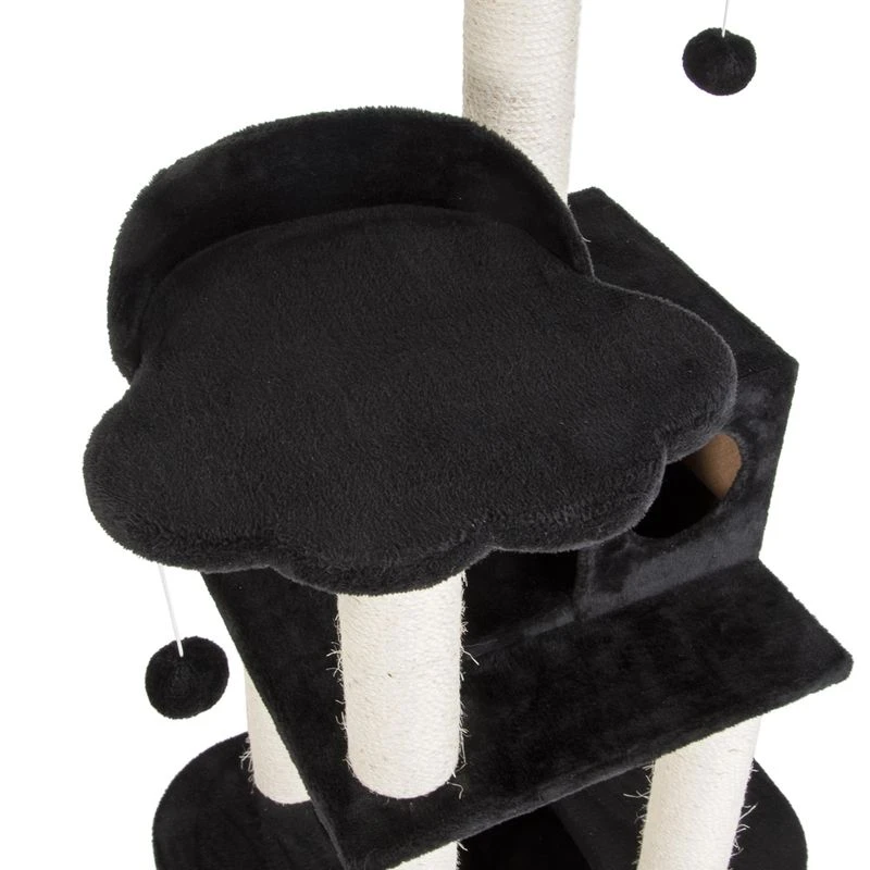 A spacious sleeping and play house on the second level offers your house cat a cosy retreat. The paw-shaped platform with edge is another highlight that invites you to lean back. The top platform is enthroned at the very top, from where your cat has a perfect view of its territory. The removable, cosy cushion provides extra sleeping comfort.