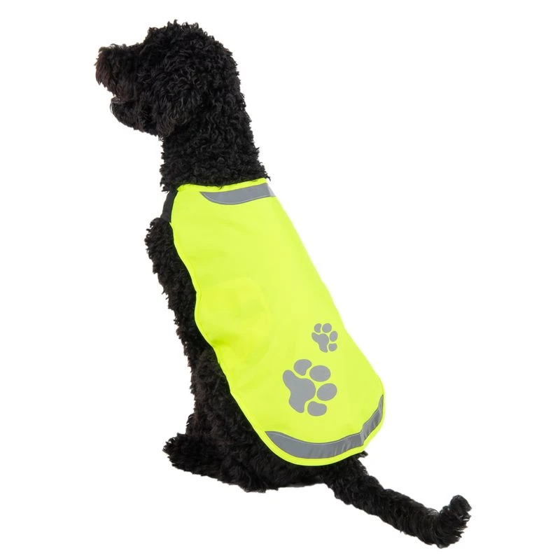 This practical safety vest for dogs is an ideal accessory for outdoor activities. This highly-visible, neon yellow vest with reflective strips will keep your dog safe, especially in darkness or low-visibility weather. The Dog Safety Vest has a 100% waterproof coating, so it also acts like a raincoat and is perfect for wet or cold weather.