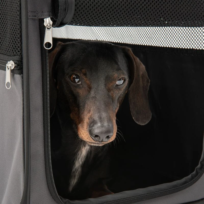 - This box is not suitable for carrying dogs and cats. It is to be used as a place to retreat to and sleep in at home, on a trip, at an exhibition or at a competition. Your pet should be supervised when inside the box, otherwise there is a risk that it could tear the material and escape.