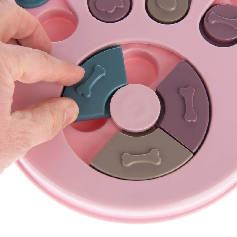 - Slider with embossed motifs: in the shape of a bone, heart or fish, makes it easier to push with the paw