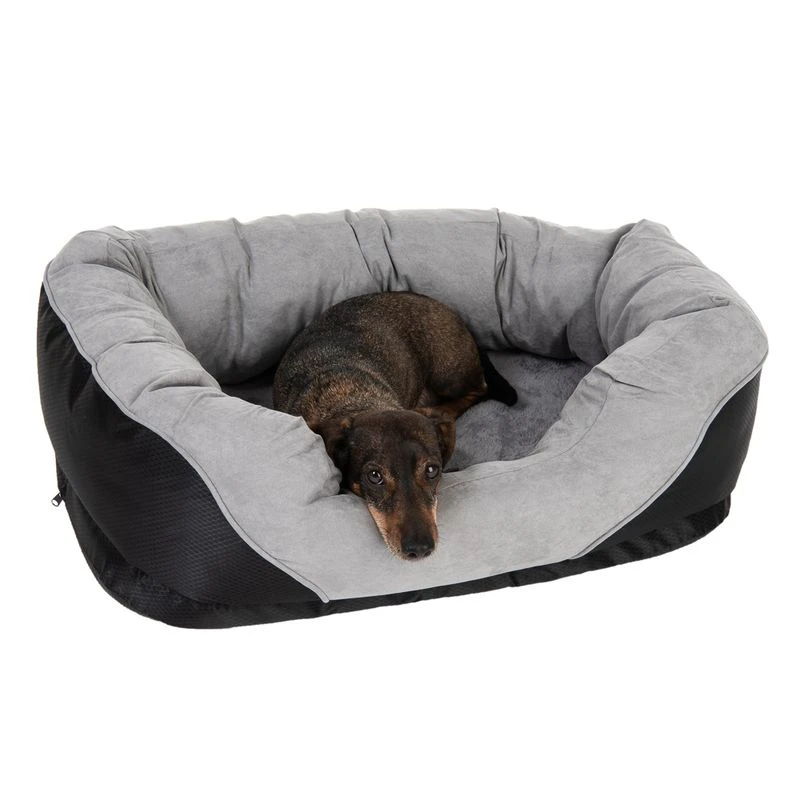 The comfort of the Lazy Dog Bed makes it the ideal choice for older dogs or pets suffering with joint or mobility issues. The extra-high border is perfect for snuggling up! The entrance of the Lazy Dog Bed is lowered to allow your dog easier access to its bed. The Lazy Dog Bed features a stylish, harmonious design, with the outer made from water-resistant black polyester and the inside and border offering a delightful suede-look design. The laying surface is covered with warm, soft plush.