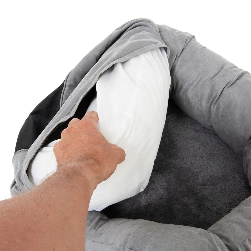 The comfort of the Lazy Dog Bed makes it the ideal choice for older dogs or pets suffering with joint or mobility issues. The extra-high border is perfect for snuggling up! The entrance of the Lazy Dog Bed is lowered to allow your dog easier access to its bed. The Lazy Dog Bed features a stylish, harmonious design, with the outer made from water-resistant black polyester and the inside and border offering a delightful suede-look design. The laying surface is covered with warm, soft plush.