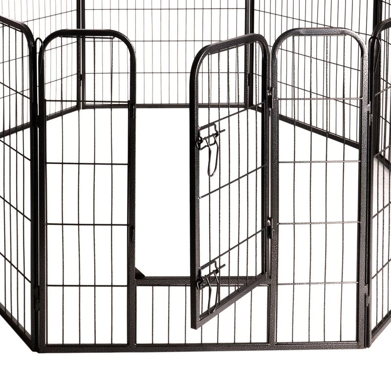 - Sturdy puppy pen, constructed with 8 painted metal elements
