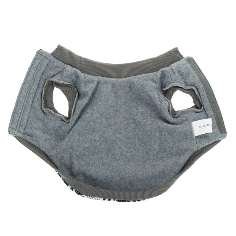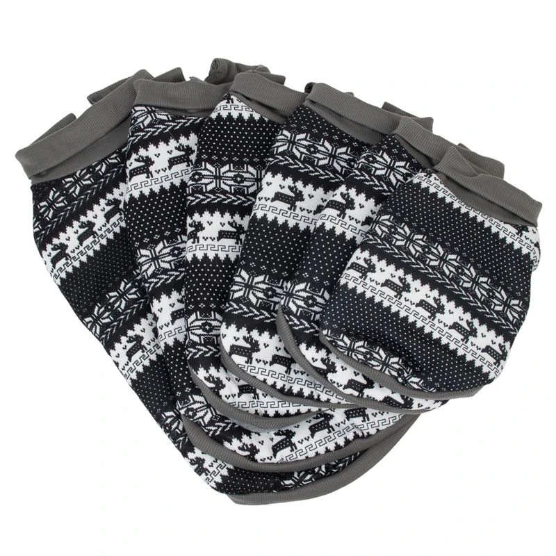 This gorgeous knitted pullover for dogs has a classic Norwegian pattern which is very fashionable this season. The black and white pullover is 100% knitted cotton and has a lovely snowflake and reindeer pattern. The soft, light grey fleece lining will keep your pet cosy warm. It also has a grey turtle neck and stretchy cuffs on the leg and tummy sections. It has Velcro tabs so it is easy to put on and take off and it is fully adjustable, so you can achieve the perfect fit for your dog.