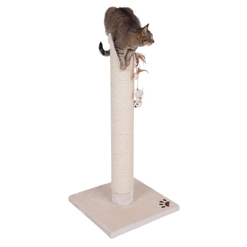 The light, cream-coloured plush with beautiful paw appliqué makes this cat furniture fit perfectly into any living room. Cats need to sharpen their claws to maintain them. They also mark their territory. The high Premium XXL scratching post offers your cat the opportunity to live out its natural scratching habits on the tightly wrapped, extra strong natural sisal. This way, your furniture, carpets and curtains will not be affected and will be spared from the scratching attacks of your little tiger.