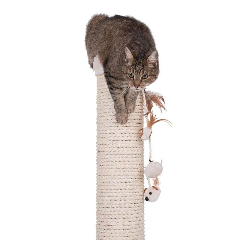 The very stable Premium XXL scratching post with especially thick and heavy base plate guarantees a stable stand even for large and heavy cat breeds such as Ragdolls, British Shorthairs or Maine Coons. The 15 cm wide trunk with especially resistant, 10 mm thick sisal wrapping as well as the 4-piece cat toy give your cat more pleasure during daily claw care!